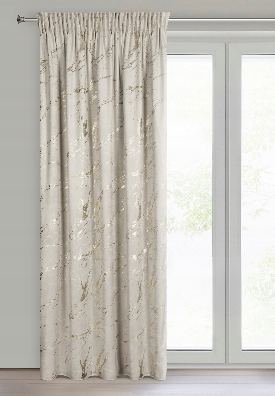 - Zasłona z miękkiej welwetowej tkaniny, ozdobiona eleganckim motywem złotego marmuru na spokojnym, stonowanym tle, to idealna dekoracja dla nowoczesnych wnętrz w stylu glamour. Aksamitna, przyjemna w dotyku tkanina dodaje wnętrzu luksusowego charakteru, a jej subtelny połysk pięknie komponuje się z naturalnym światłem. Modny wzór wprowadza do pomieszczenia stylowy akcent, tworząc przytulną i modną przestrzeń. Nasze kolekcje są tworzone z pasji do pięknych wnętrz – stwórz z nami idealną oazę spokoju w swoim domu .