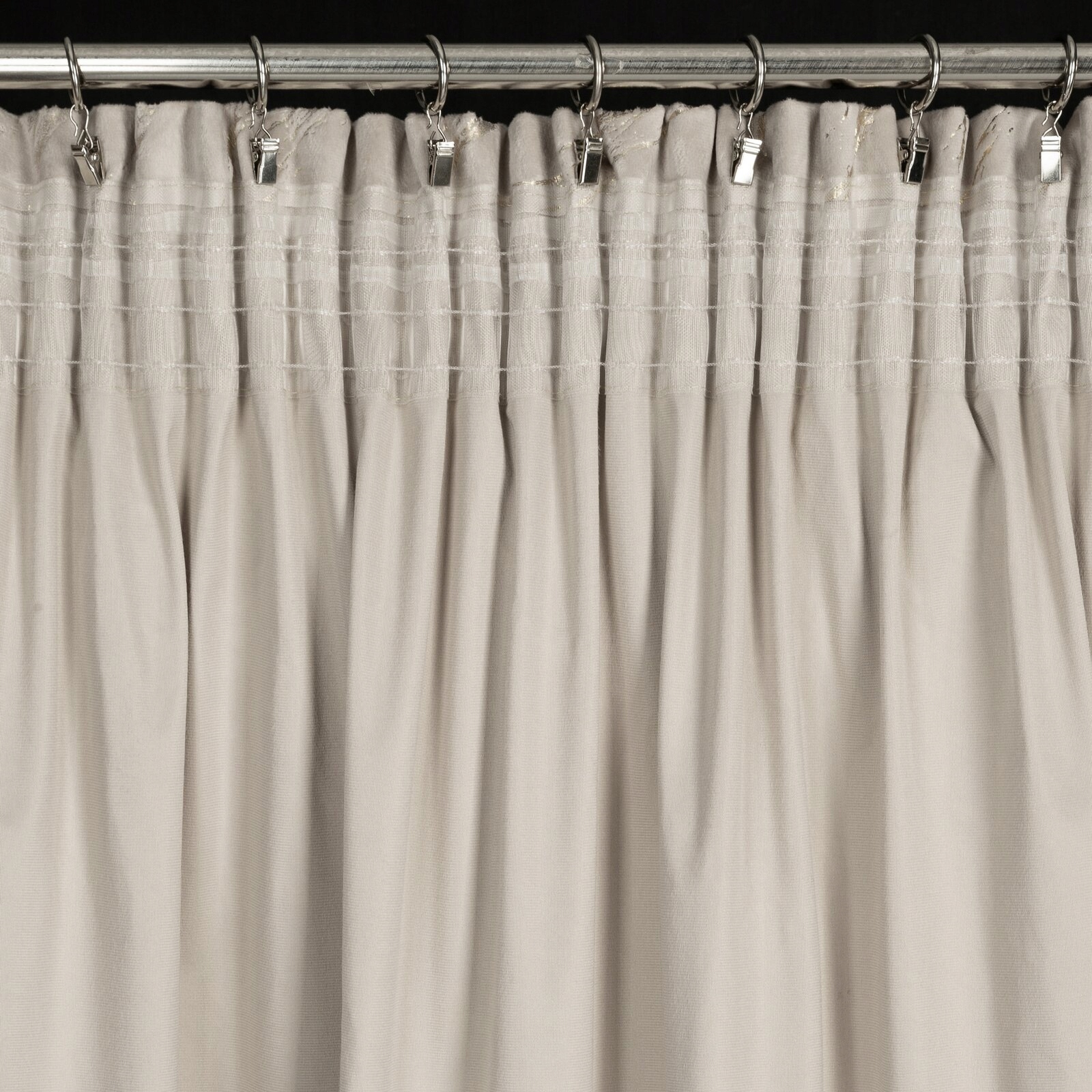 - Zastosowanie uniwersalnej taśmy marszczącej z opcją tunelu sprawia, że zasłonę możesz zawiesić zarówno za pomocą haczyków czy żabek, jak i, naciągając ją na karnisz drążkowy.