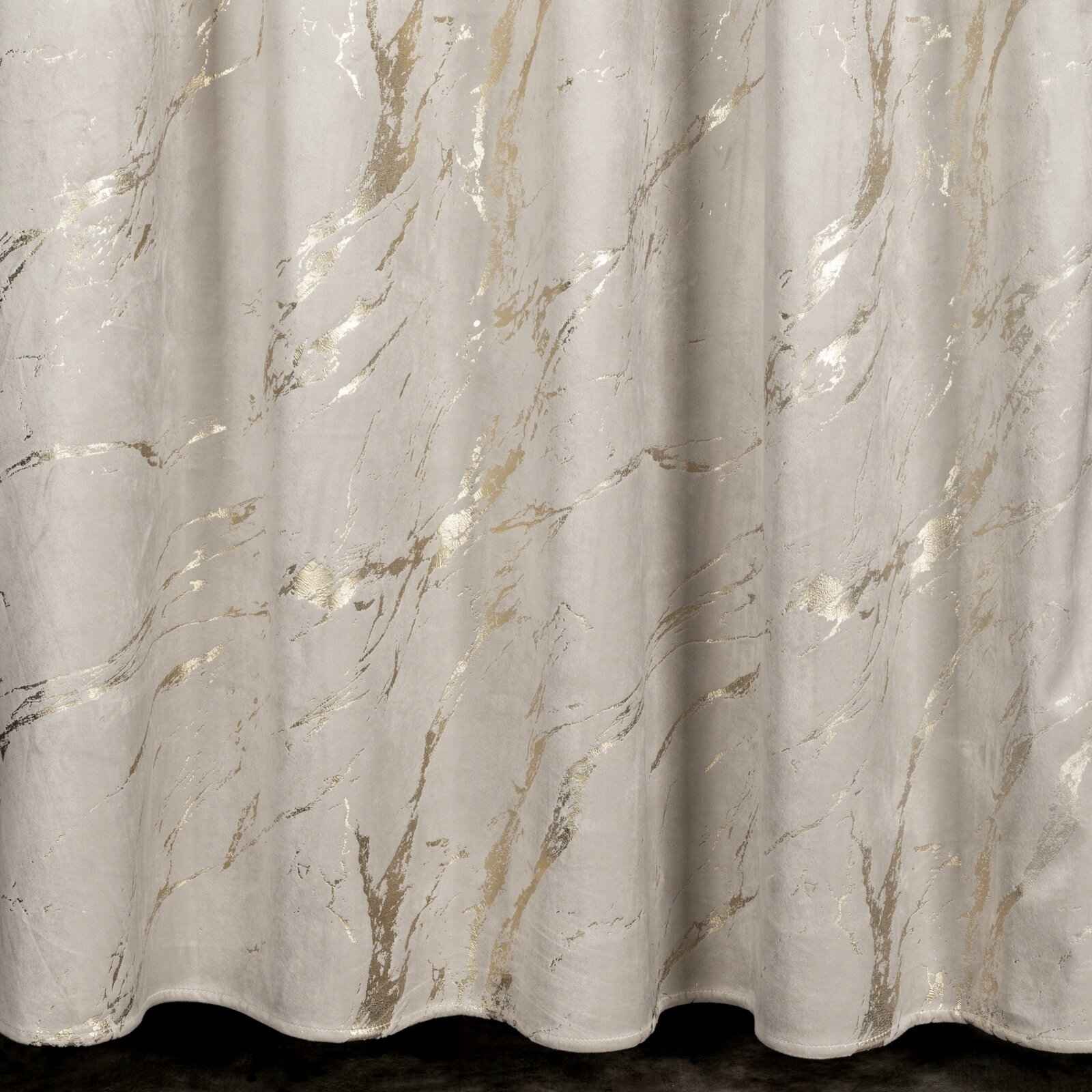 - Zasłona z miękkiej welwetowej tkaniny, ozdobiona eleganckim motywem złotego marmuru na spokojnym, stonowanym tle, to idealna dekoracja dla nowoczesnych wnętrz w stylu glamour. Aksamitna, przyjemna w dotyku tkanina dodaje wnętrzu luksusowego charakteru, a jej subtelny połysk pięknie komponuje się z naturalnym światłem. Modny wzór wprowadza do pomieszczenia stylowy akcent, tworząc przytulną i modną przestrzeń. Nasze kolekcje są tworzone z pasji do pięknych wnętrz – stwórz z nami idealną oazę spokoju w swoim domu .
