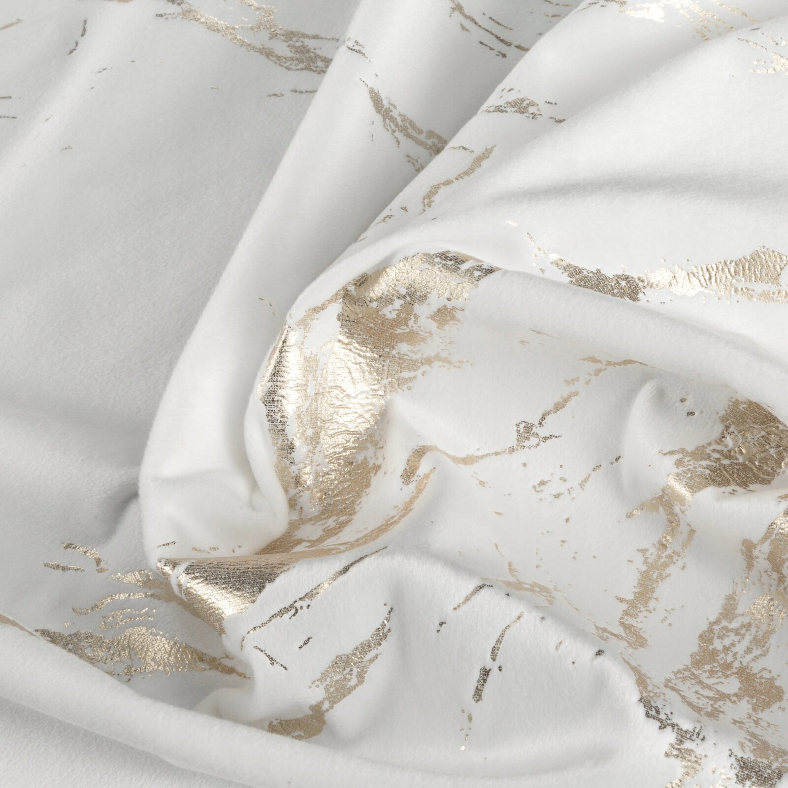 Zasłona z miękkiej welwetowej tkaniny, ozdobiona eleganckim motywem złotego marmuru na spokojnym, stonowanym tle, to idealna dekoracja dla nowoczesnych wnętrz w stylu glamour. Aksamitna, przyjemna w dotyku tkanina dodaje wnętrzu luksusowego charakteru, a jej subtelny połysk pięknie komponuje się z naturalnym światłem. Modny wzór wprowadza do pomieszczenia stylowy akcent, tworząc przytulną i modną przestrzeń. Nasze kolekcje są tworzone z pasji do pięknych wnętrz – stwórz z nami idealną oazę spokoju w swoim domu.
