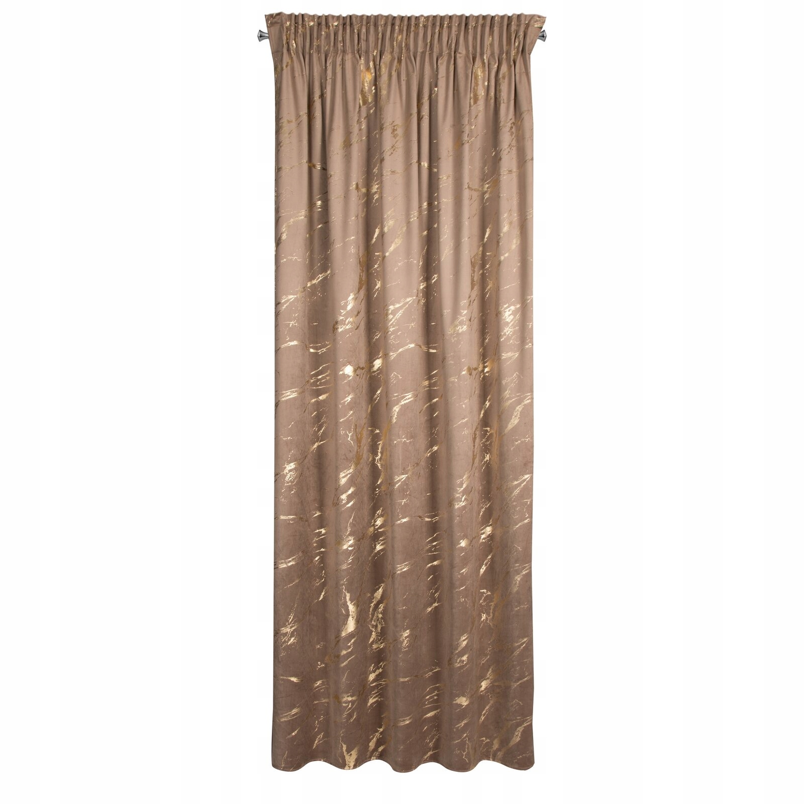 Zasłona gotowa welwetowa brąz szampan z nadrukiem 140×270 taśma