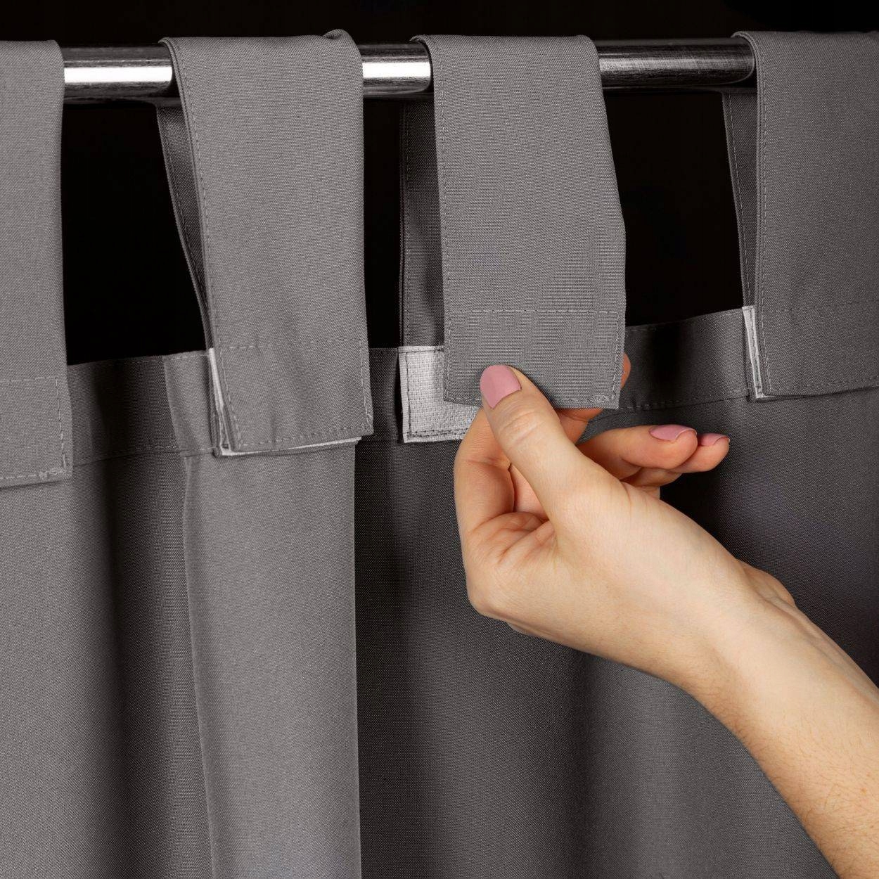 Zastosowanie rzepa na każdej szelce umożliwia łatwy i szybki sposób zawieszenia i zdjęcia zasłony, bez konieczności demontażu karnisza.
