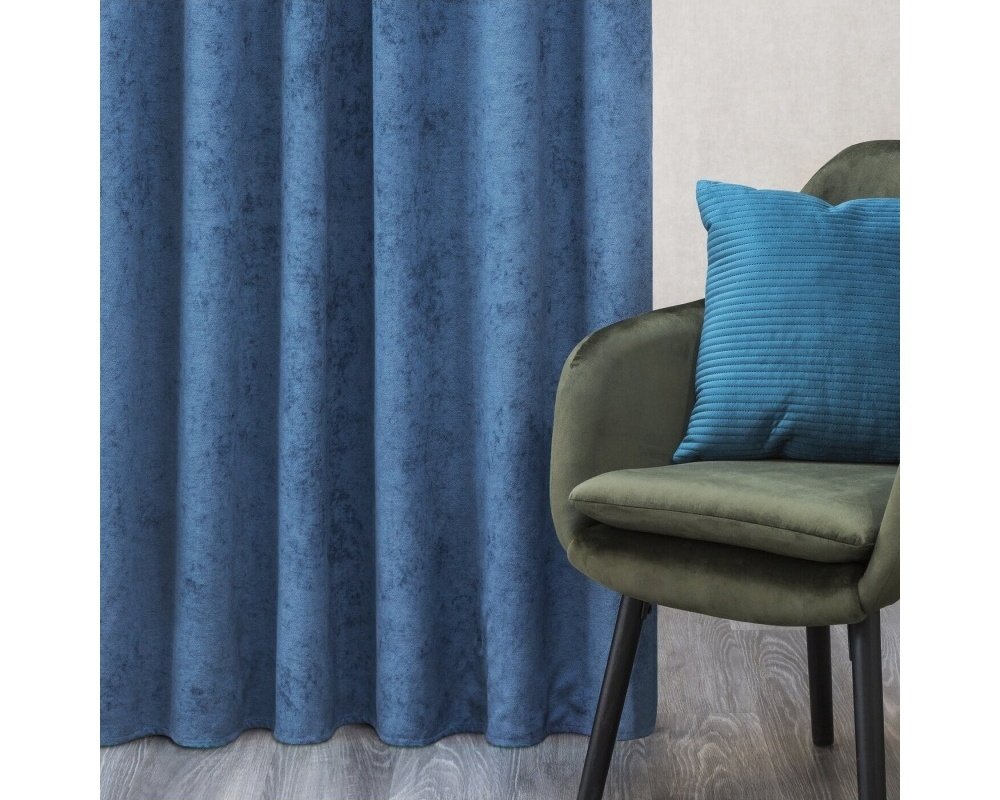 Produkt w kolorze granatowym z przelotkami, które ułatwiają montaż na karniszu. Zasłona zapewni Ci niezbędną prywatność i ochroni przed uciążliwym światłem słonecznym. Dlatego leniwe poranki będą mogły trwać dłużej, a wieczory staną się bezpieczne i ciche. Materiał ładnie oddaje kolor oraz jest miły dla oka. Zasłona to tradycja i minimalizm, tak pożądany w ostatnich czasach.