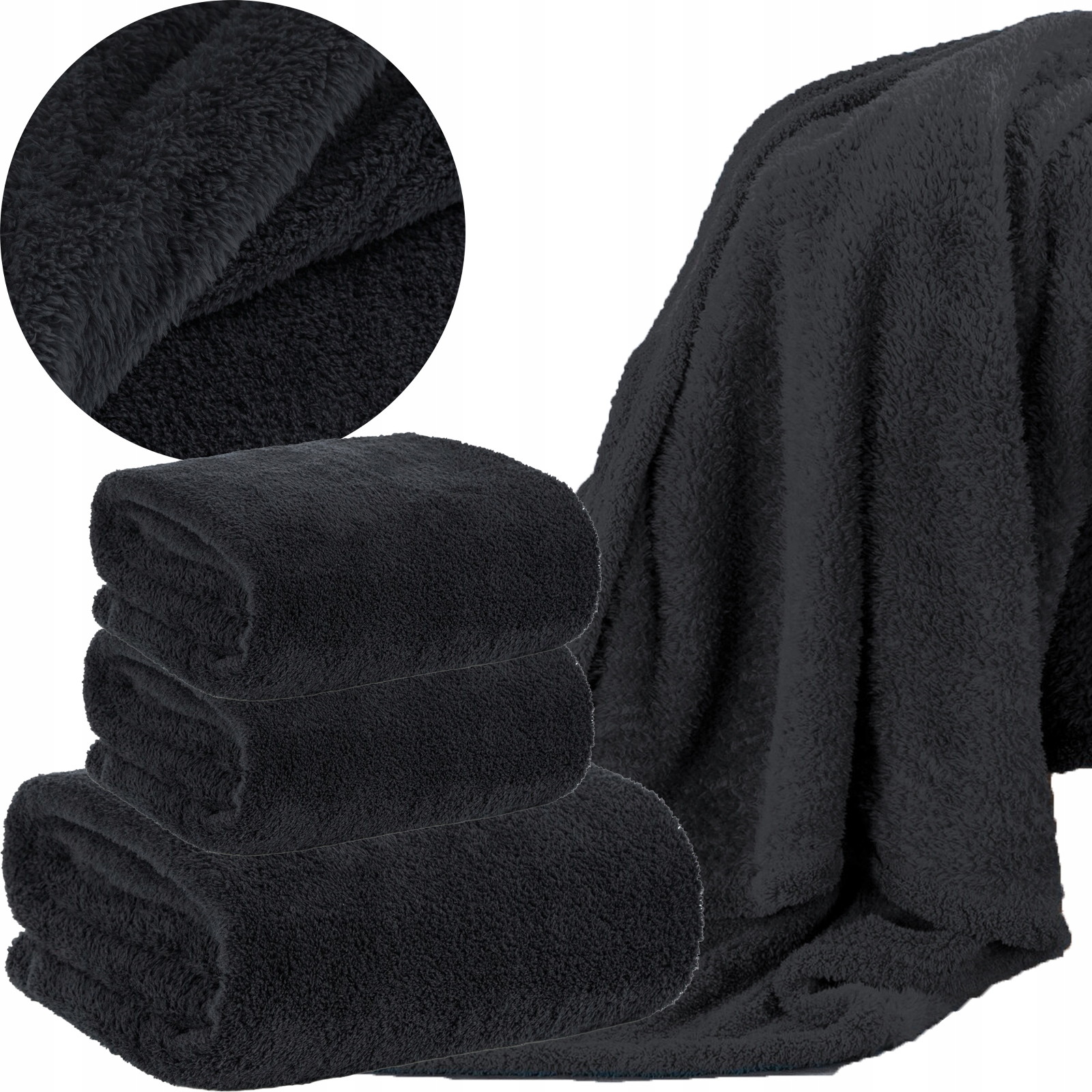 ZESTAW 170×210 + 2 x 70×160 Mięciutki koc narzuta CZARNY