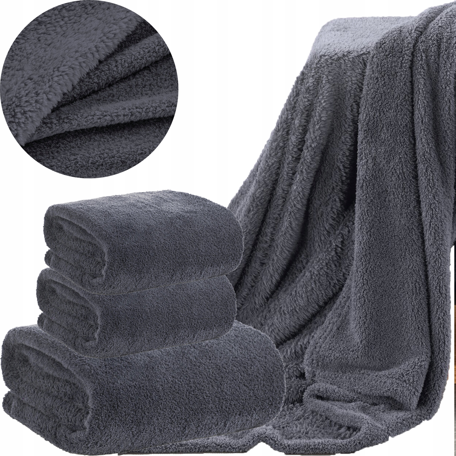 ZESTAW 170×210 + 2 x 70×160 Mięciutki koc narzuta STALOWY