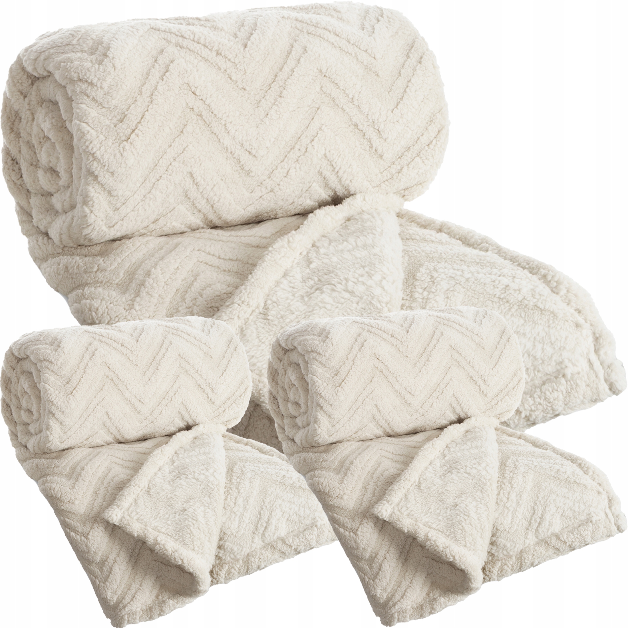 Zestaw Koc narzuta 170×210 + 2 x 70×160 gruby mięciutki puszysty beżowy