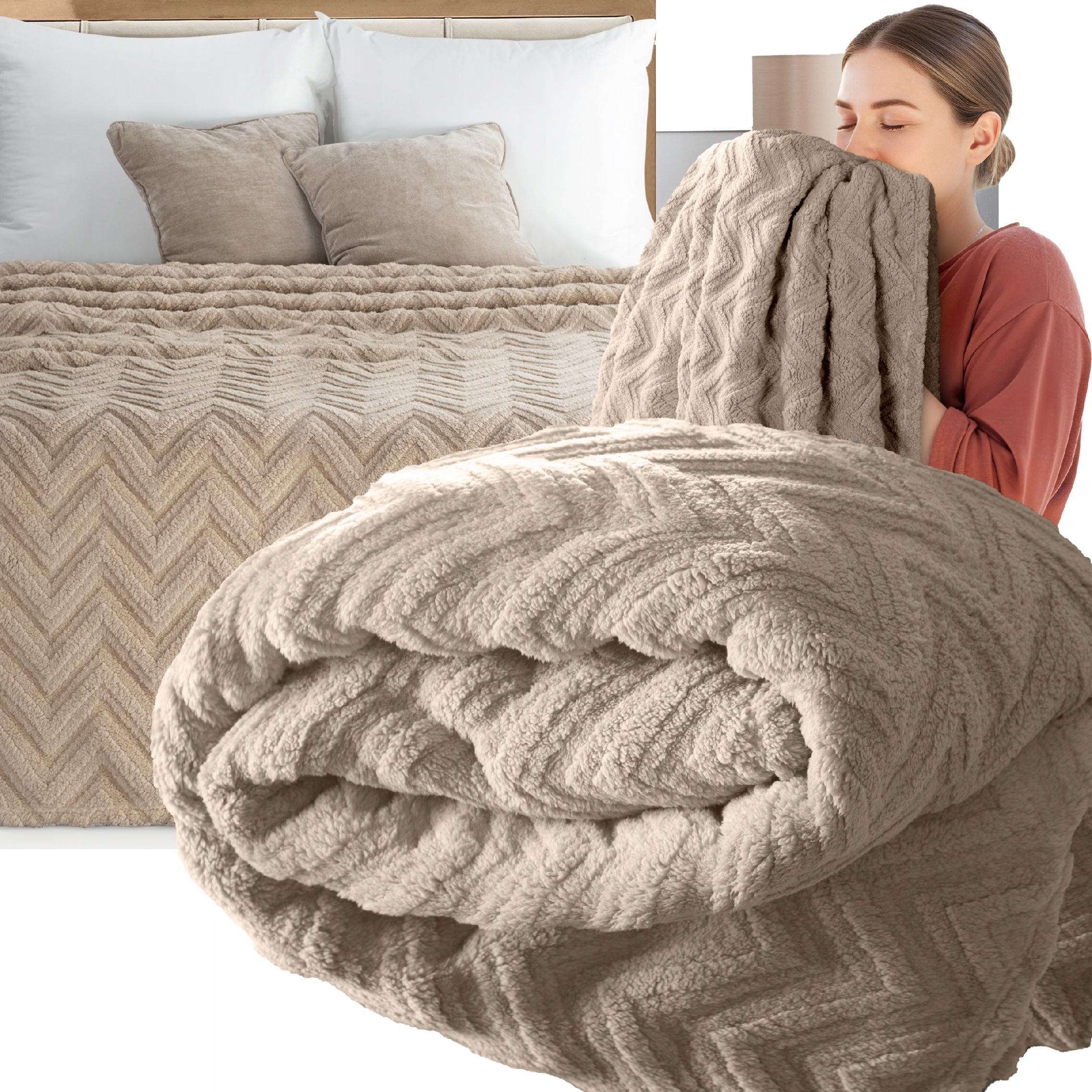 Koc narzuta 170 cm x 210 cm bardzo miękki w dotyku z efektem 3d beż