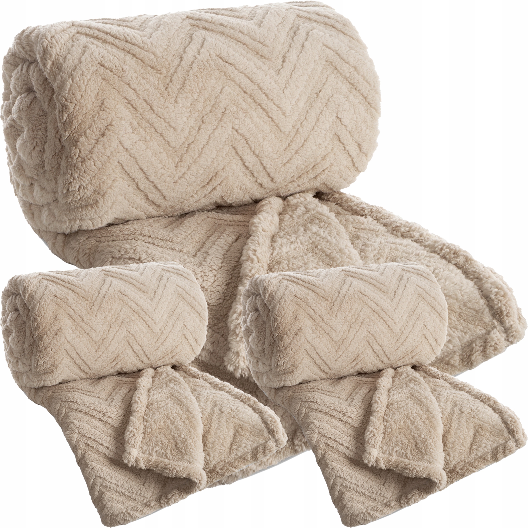 Zestaw Koc narzuta 170×210 + 2 x 70×160 gruby mięciutki puszysty c.beżowy
