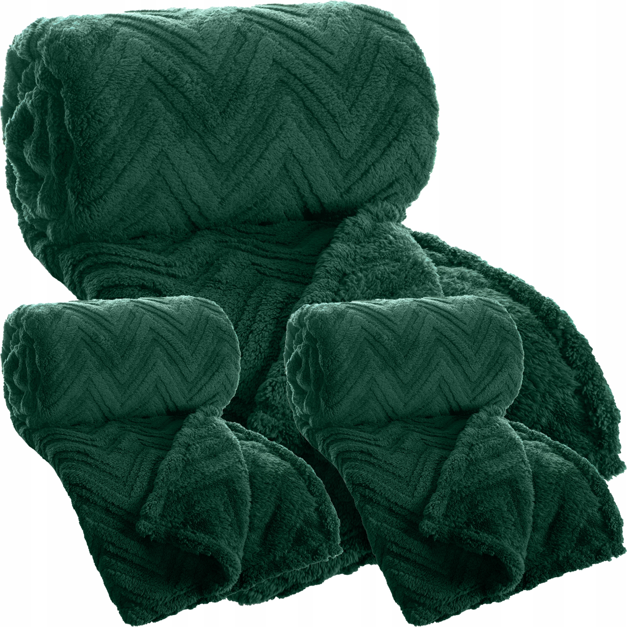 Zestaw Koc narzuta 170×210 + 2 x 70×160 gruby mięciutki puszysty c.zielony